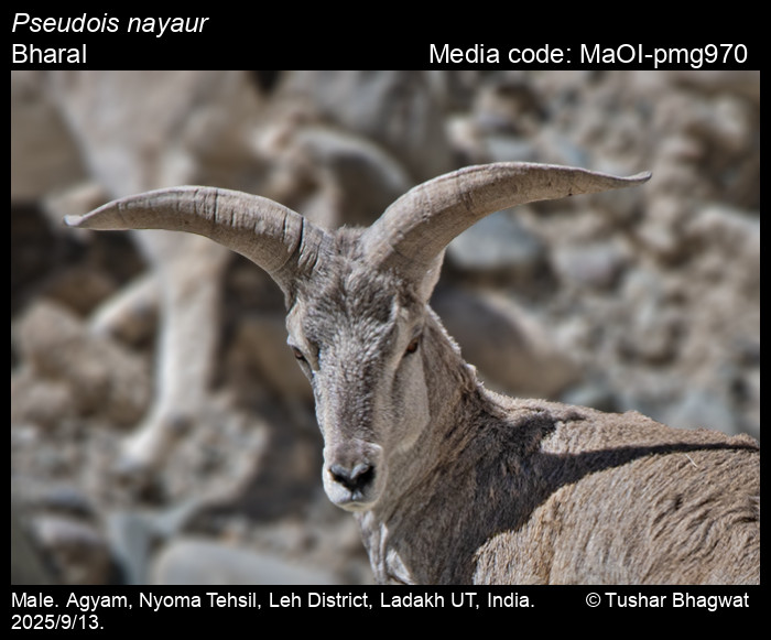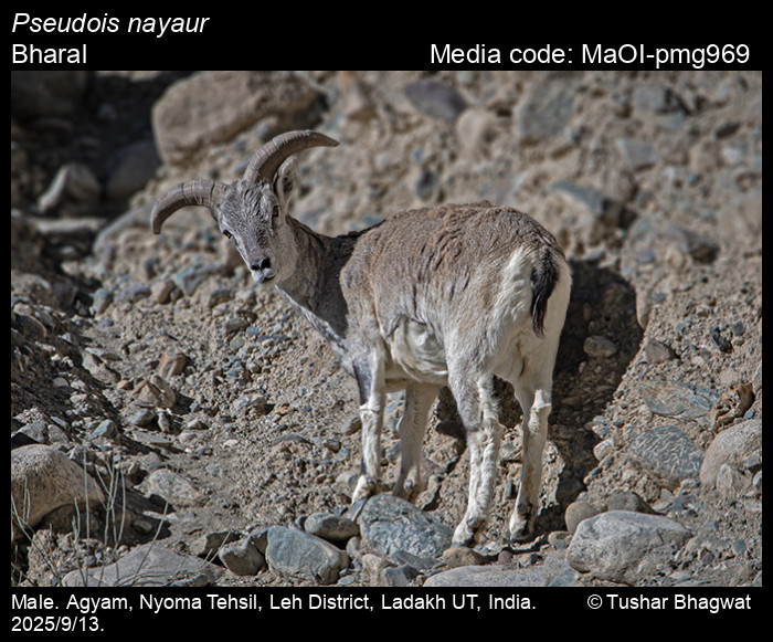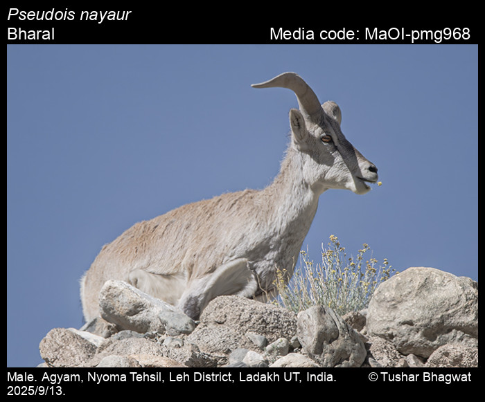Anonymous 2025. Pseudois nayaur Hodgson, 1833 – Bharal. In Bayani, A., R. Chakravarty, and K. Kunte (Editors) (Chief Editors). Butterflies of India, v. 1.13. Published by the Indian Foundation for Butterflies. URL: https://www.mammalsofindia.org/pseudois-nayaur, accessed 2025/10/03.