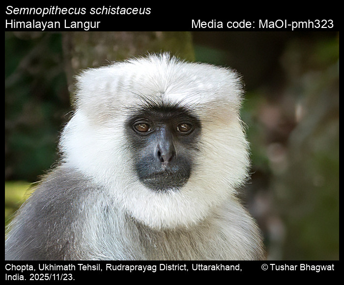 Anonymous 2026. Semnopithecus schistaceus Hodgson, 1840 – Himalayan Langur. In Bayani, A., R. Chakravarty, and K. Kunte (Editors) (Chief Editors). Butterflies of India, v. 1.13. Published by the Indian Foundation for Butterflies. URL: https://www.mammalsofindia.org/semnopithecus-schistaceus, accessed 2026/01/01.